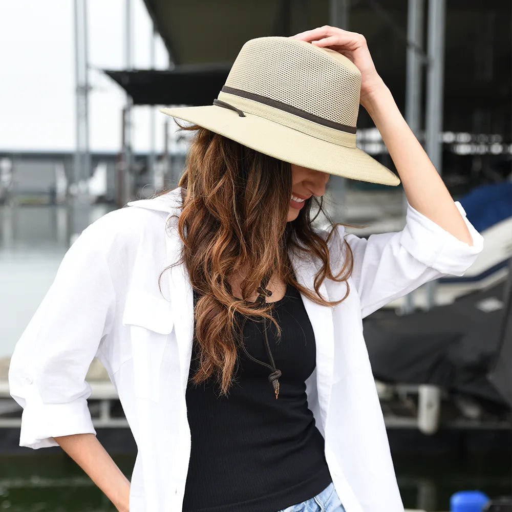 Here at American Hat Makers, we specialize in designing women’s fashion hats that offer stylish protection and make you feel confident wherever you wear them. Whether you choose a wide brim sun hat, straw womens fedora hat, packable mesh hat, or another sun hat for women, your piece can effortlessly take you from the beach to backcountry mountain trails to wine tastings and, of course, beach getaways.
